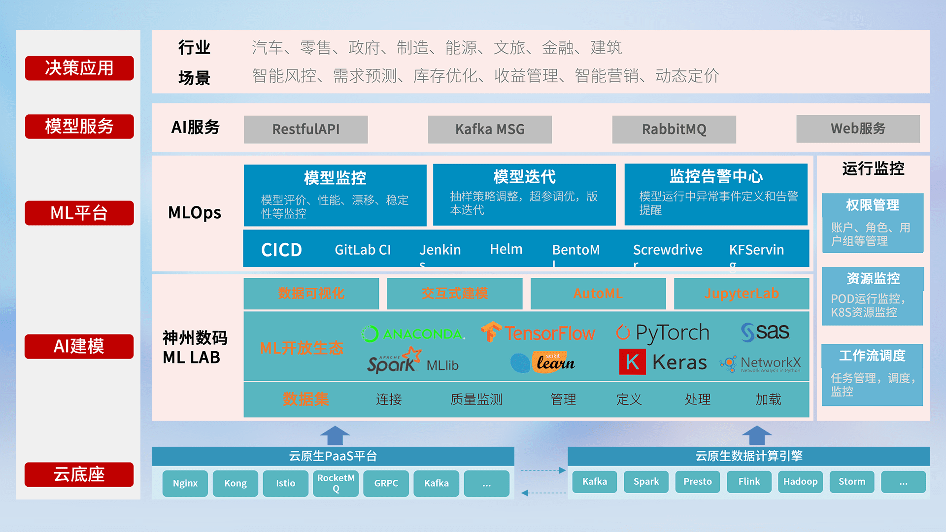 数据+模型双引擎驱动,,面向智能服务场景,,快速灵活利用AI技术,,,支持业务决策,,助力企业智能化转型破局。。